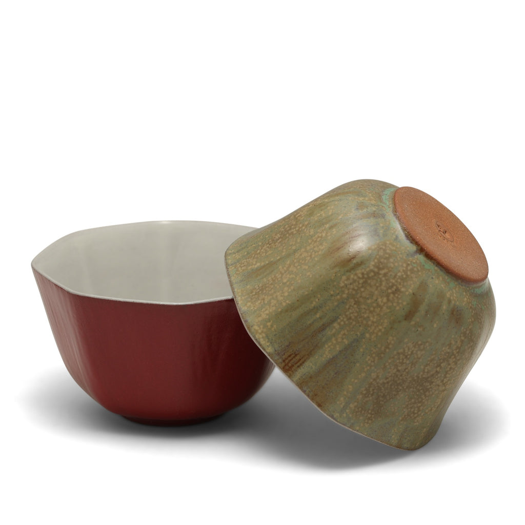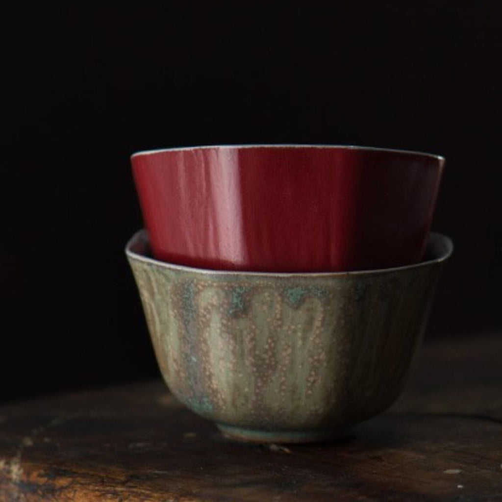 These glazed octagonal cups have the distinction of being selected by our Discord community while we were sourcing teaware in China. The 'eggshell' style is unusual for non-porcelain ceramic, as one can see from ruddy brown material exposed on the foot, and the thin walls tapering to a mere couple millimeters is not only impressive, but keeps the cups airy light in the hand. The soft octagon with its slightly textured exterior glaze adds to the haptics, while the cool off-white interior glaze shows off the color of the infusion beautifully, making these the perfect everyday gongfu cups for those who prefer color and texture to pure white ceramic.