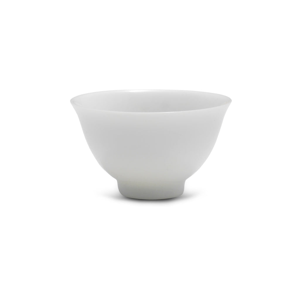 These teacups match the profile of a standard gaiwan in miniature: the thin walls taper to a fine lip, tilted to pour their contents into waiting mouths, while the narrow yet heavy base keeps the cup upright. The bowed sides are not only aesthetically pleasing, but lend strength to the little vessel, surprisingly sturdy for its size. Perhaps its biggest advantage, though, is the brightness of its white porcelain, facilitating appreciation of the infusion's colour. Along with its affordable price and respectable quality, this makes it a good choice for tea tastings. Take advantage of the discount on ordering in bulk, and your next tea party is set!