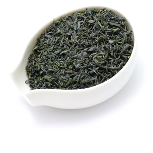 Fresh green tea leaves are heated immediately after harvesting. They are then shaped into the desired form, for example by rolling, and finally dried. Through heating, natural oxidation is prevented, so that the leaves retain their green colour.