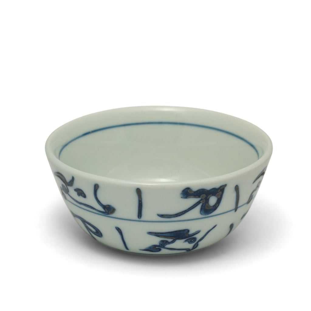 Echoing the 14th‑century vessels carried from Jingdezhen to the Middle East, every irregular, abstract glyph is laid by hand—a homage to the intercultural currents that shaped blue‑white porcelain. Pair it with our Ming cup for a duo that celebrates two of Ming dynasty’s most captivating export styles. Elevate your tea ritual with a cup that’s as storied as it is sturdy.