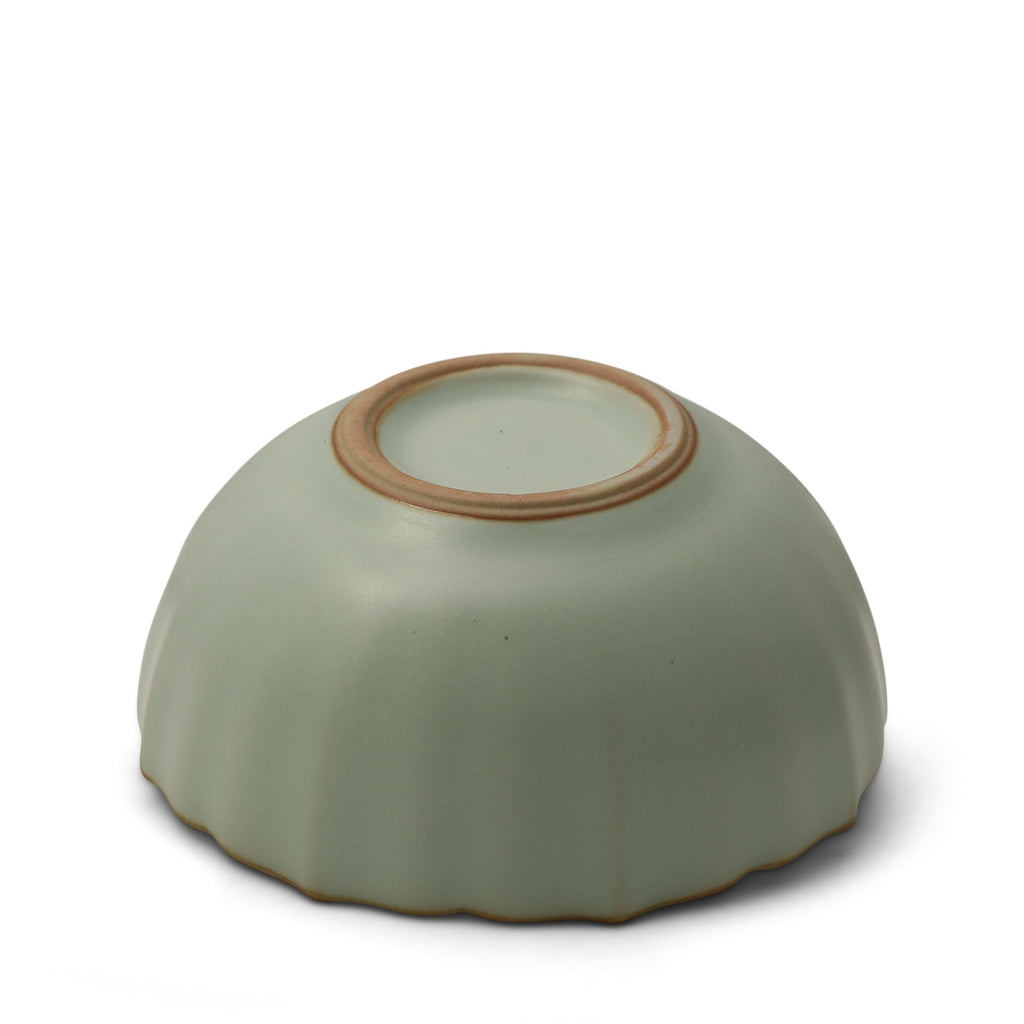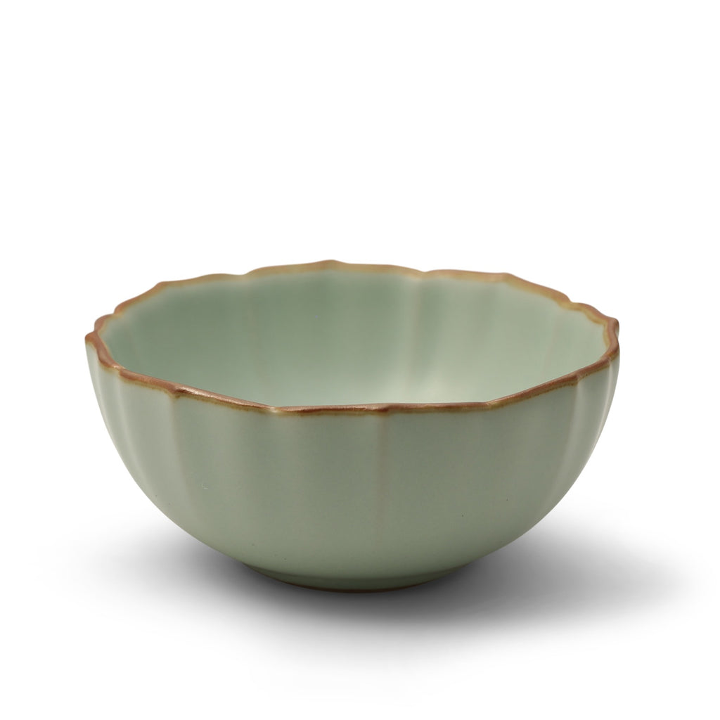 With its softly undulating silhouette and warm brown rim, this fluted celadon cup radiates quiet confidence. The pale green glaze, smooth and unbroken, pays homage to centuries of Chinese aesthetics—when, from the Song to the Ming dynasty, monochrome ceramics like this one embodied refined taste. There’s a tactile rhythm to its curved walls, reminiscent of a flower in full bloom, yet grounded in a form that feels timeless and essential.