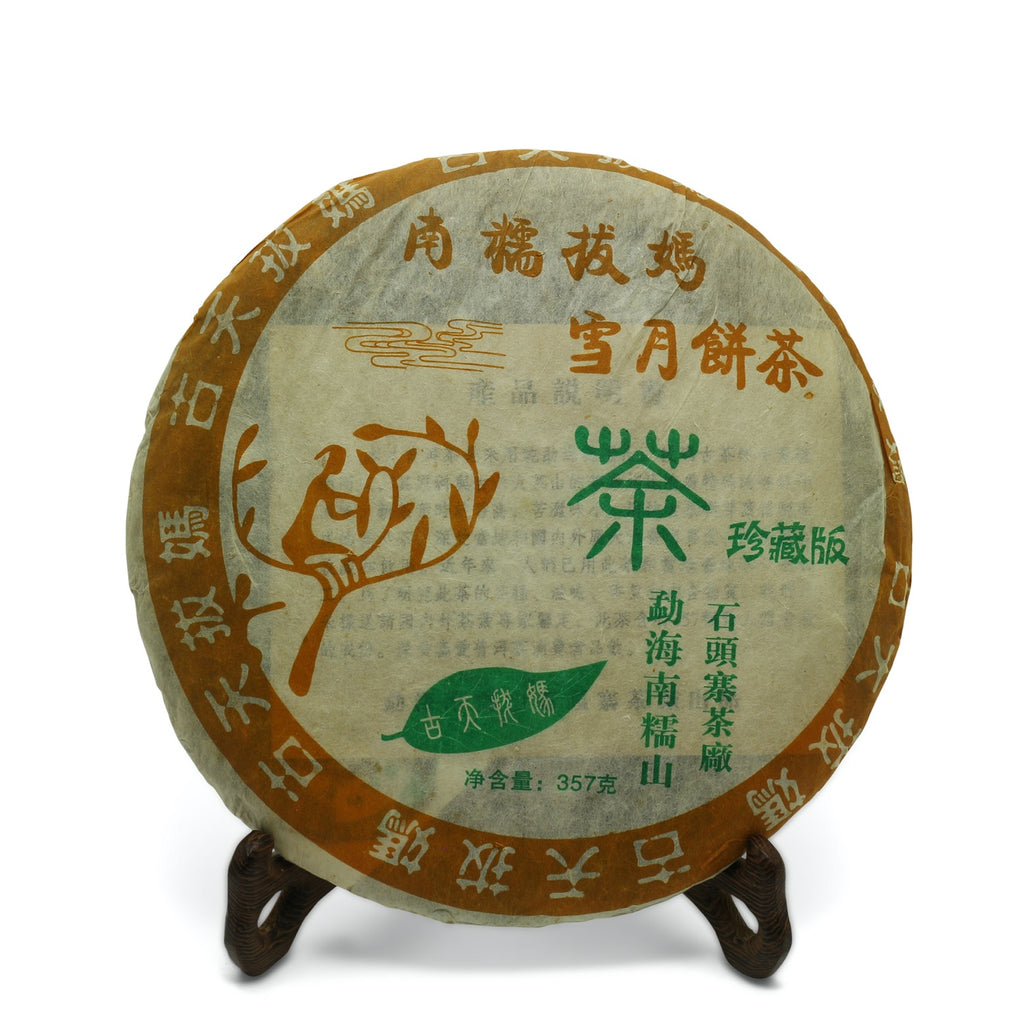 Formerly only available in our Private Collection subscription, this limited edition, distinctive cake from our namesake tea mountain is worth every drop: flash brewing yields a mild, woody liquor with an aftertaste of milky caramel tempered by medium astringency. The aroma may take its cue from the orange of its wrapper, and the oxidized buds within, displaying the addictive tartness of dried apricots. Already aged for more than a decade, it promises to grant its owner many years of pleasure.