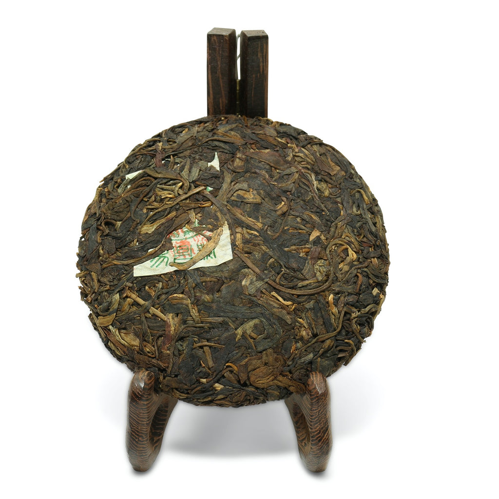 Yi Chang was the first and flagship brand of the acclaimed Changtai Tea Group during their earlier years. The 2003 vintage received several different pressings of different grades, but the very best were sealed in these small 100-gram cakes, which have been ageing in dry storage for more than fifteen years. The dry leaves, which smell of old wood and spices, produce a liquor that is sweet and terribly smooth, with the soft umami of lobster mushrooms or even tender scallops. Rounded by the spiciness of pepper and a palpable hui gan like eucalyptus, its velvety mouthfeel is pure pleasure to drink. A treat for those who enjoy age-mellowed Sheng, and a rarity for collectors.