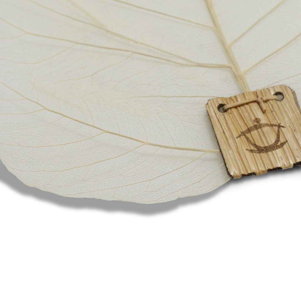 Made from the delicately desiccated leaves of the sacred fig, also known as the bodhi tree, after the site of the Buddha's enlightenment. The simple addition of a piece of wood and twine turns it into surprisingly stable and effective tea strainer, the lacy skeleton filtering even the finest tea leaves as it gently warps and stains with the colour of the tea poured through. Plus, the handle emblazoned with our logo, it's an elegant way to show your support while sipping on some Nannuoshan tea!