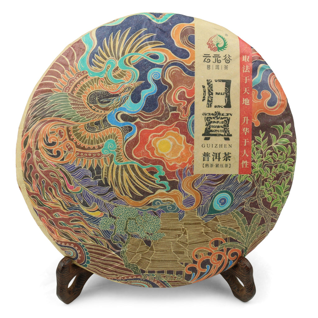 The producers of this colorfully-wrapped bing have managed to bring aromatics more often present in sheng pu'er to a shu, with its thick mouthfeel and full body. The bitterness typical of Bulang tea is here just a pleasant touch of cocoa powder and sassafras, while the wet leaves give off a strong aroma of camphor and sourdough, just detectable in the final infusion. It bears the benefit of being easily able to control the strength of the infusion, with a little less time for a more drawn out flavor, or a little more for a true shu intensity—and to come back to reality.