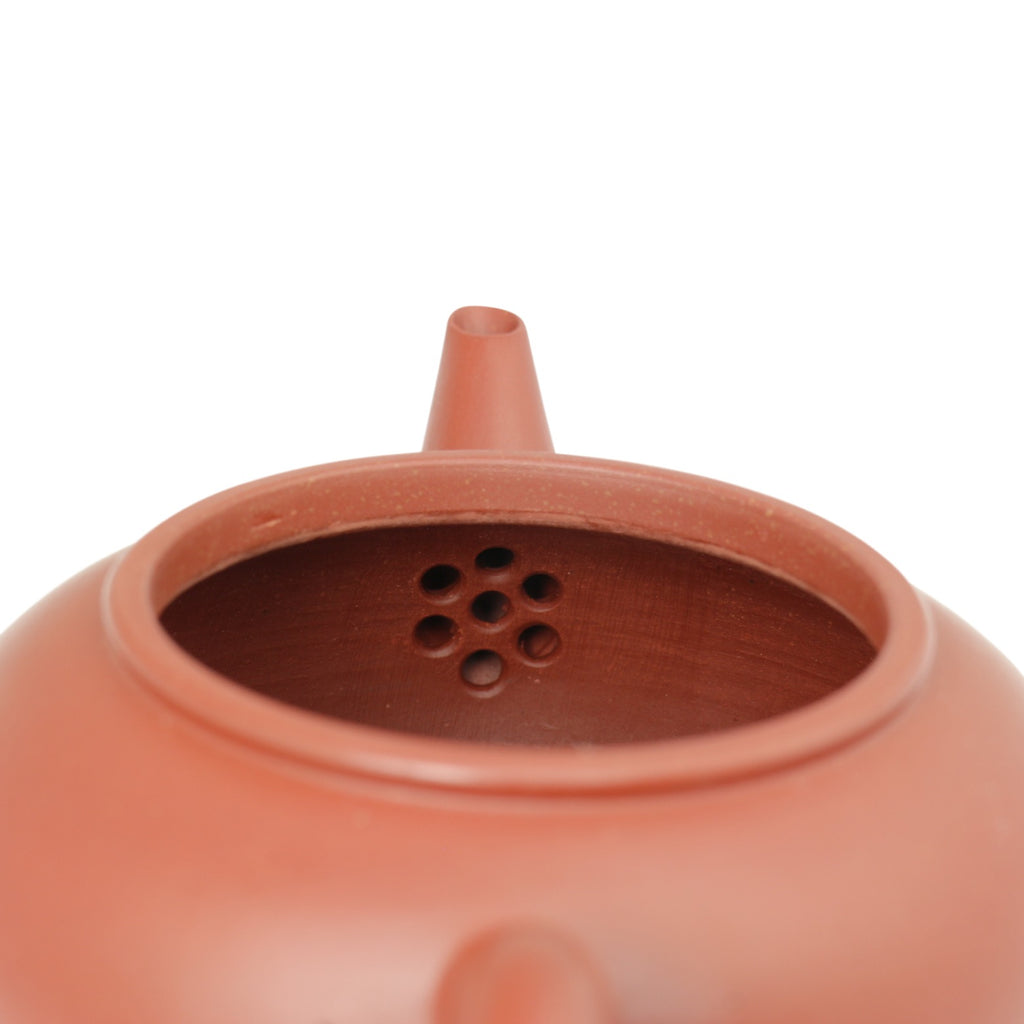 The Floating Yixing teapot is made of the aged Lao Hongni (老红泥) clay, a red ore extracted several years ago at the mine in Lanshan (拦山). The clay was stored at the entrance of the mine for more than a decade before being shaped into a teapot and fired. The suffix "lao" ("old" in Mandarin) refers to the long storage.