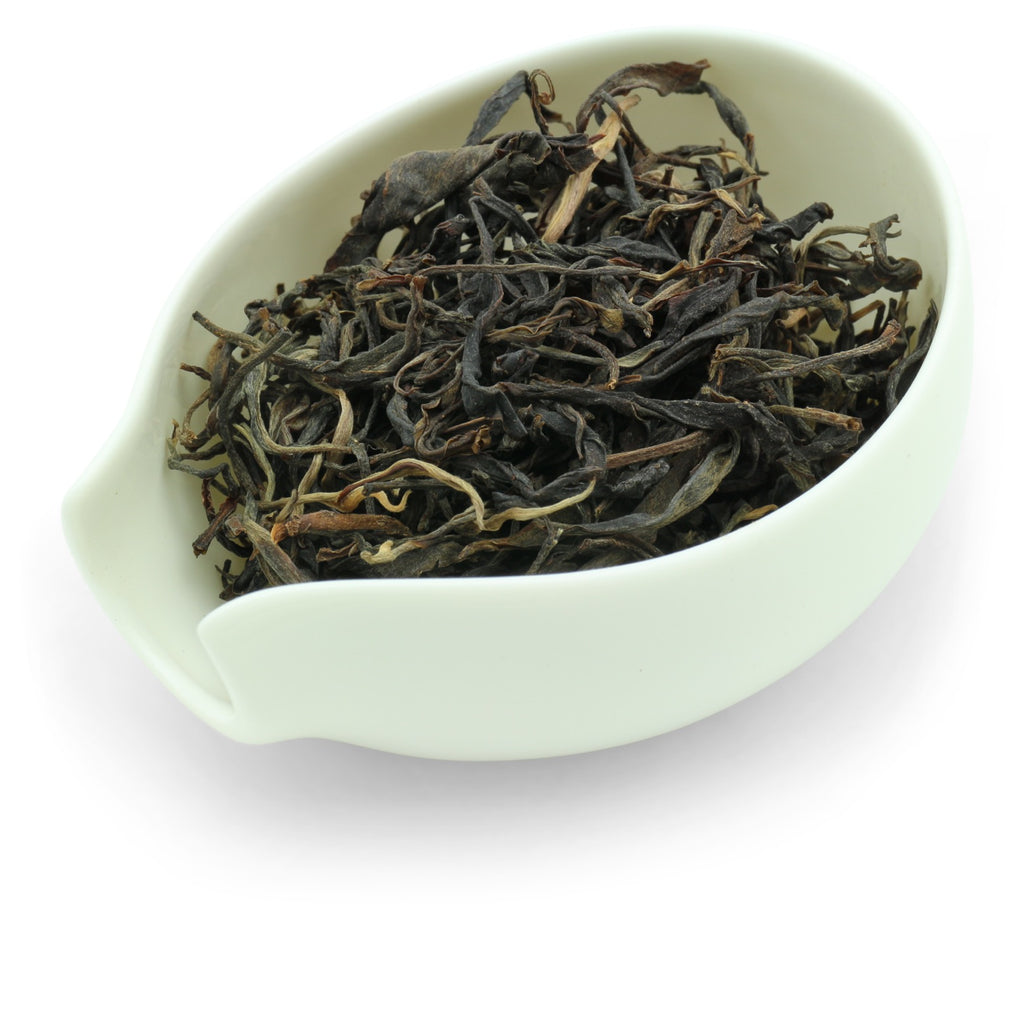 Could these leaves be the Mansong tea rumoured to conjure up visions of Mount Yibang? The unassuming dark spindles interspersed with rosy buds, having been kept loose from pressings, infuses the water pure and sweet—of an unmatchable delicacy, yet with a plump body that sits gently on the throat. Rose water, cooked peaches, and vanilla comes to mind while enjoying the idle moments created by its lasting infusions, contributing laud and rune to the tribute of pu'er tea from a mountain quite well known to be.
