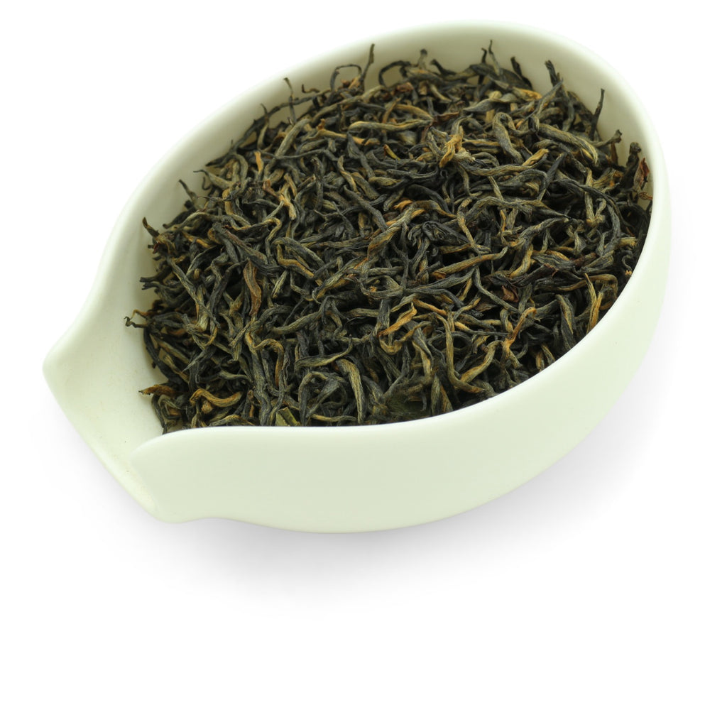 A newcomer varietal with characteristic golden buds, Jin Jun Mei was developed in 2005 in Tongmuguan, forbidden to outsiders and nestled in the same almost-inaccessible, mountainous corner of Wuyishan that also produced Lapsang Souchong. Considered one of the pinnacles of Chinese black teas, it has been the subject of much hype since its creation, and other than beginning oxidation by shaking, a technique usually reserved for oolong production, the special steps in its processing have been kept a closely-guarded secret.
