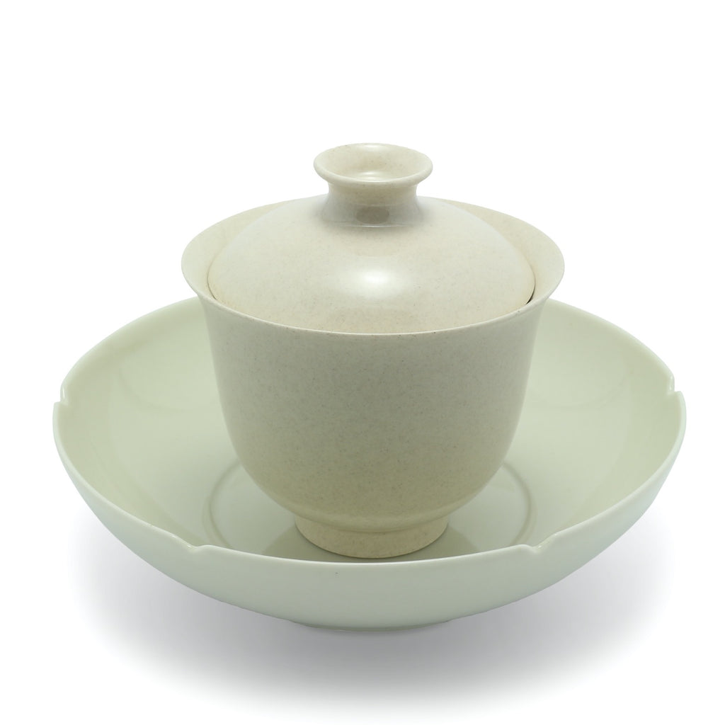 A simple tea boat in an ecru colour that will catch any wayward drips, splashes, or spills. The deep plate is notched to suggest a flower that will cradle the brewing vessel of your choice within its ceramic petals, drawing attention to the brewing scene with layers of appreciation. The plate is a speckled sandy hue that is smooth to touch and will complement Duanni or Zini Yixing teapots and darker earthen hues, or return it to its original match: the sandy gaiwan.