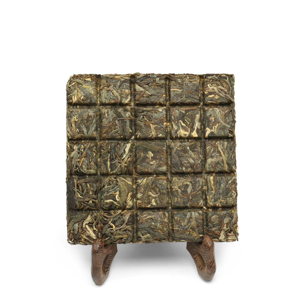 Produced by Shuangjiang Mengku, known for the consistently clean and fresh sheng coming out of their Mengku Rongshi brand, it's no surprise that this one fits the bill with the crisp fruitiness of quince and blackcurrant. More interesting is a very velvety mouthfeel with a creamy aftertaste that complements the fruit and camphor hui gan. Delightful in its fresh character, one can imagine equally pleasant developments over time. The small bricks are pressed in chocolate-bar-like squares for easy dosing and beautifully presented, the neatly folded wrapper cushioned in a special presentational box.
