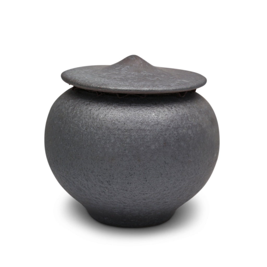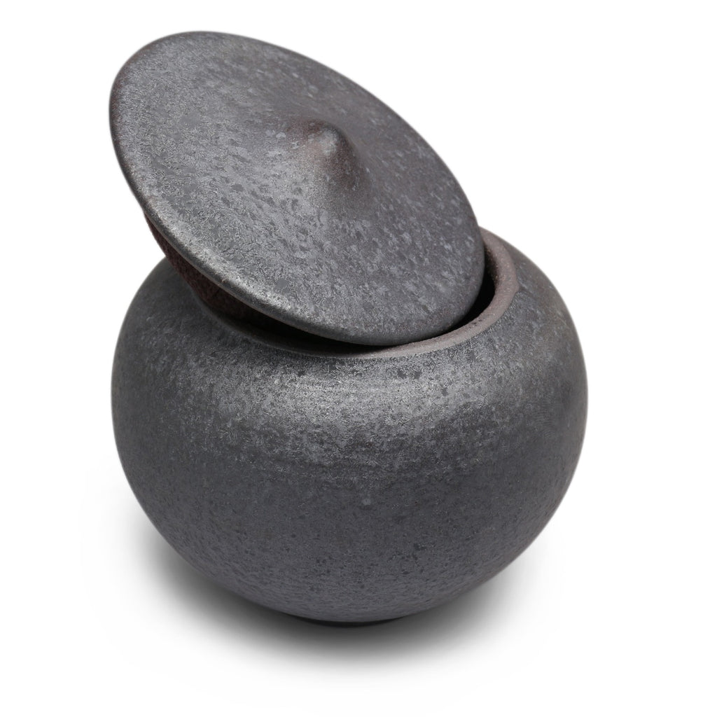 A compact jar perfect for cacheing a precious or special tea, the Quail Egg Jar is reminiscent of nothing so much as a quail egg wearing a cheeky hat, with its glossy dark-speckled white enamel, and features unglazed edges exposing violet-brown clay beneath. Also comes in a handsome slate-grey rippled glaze.