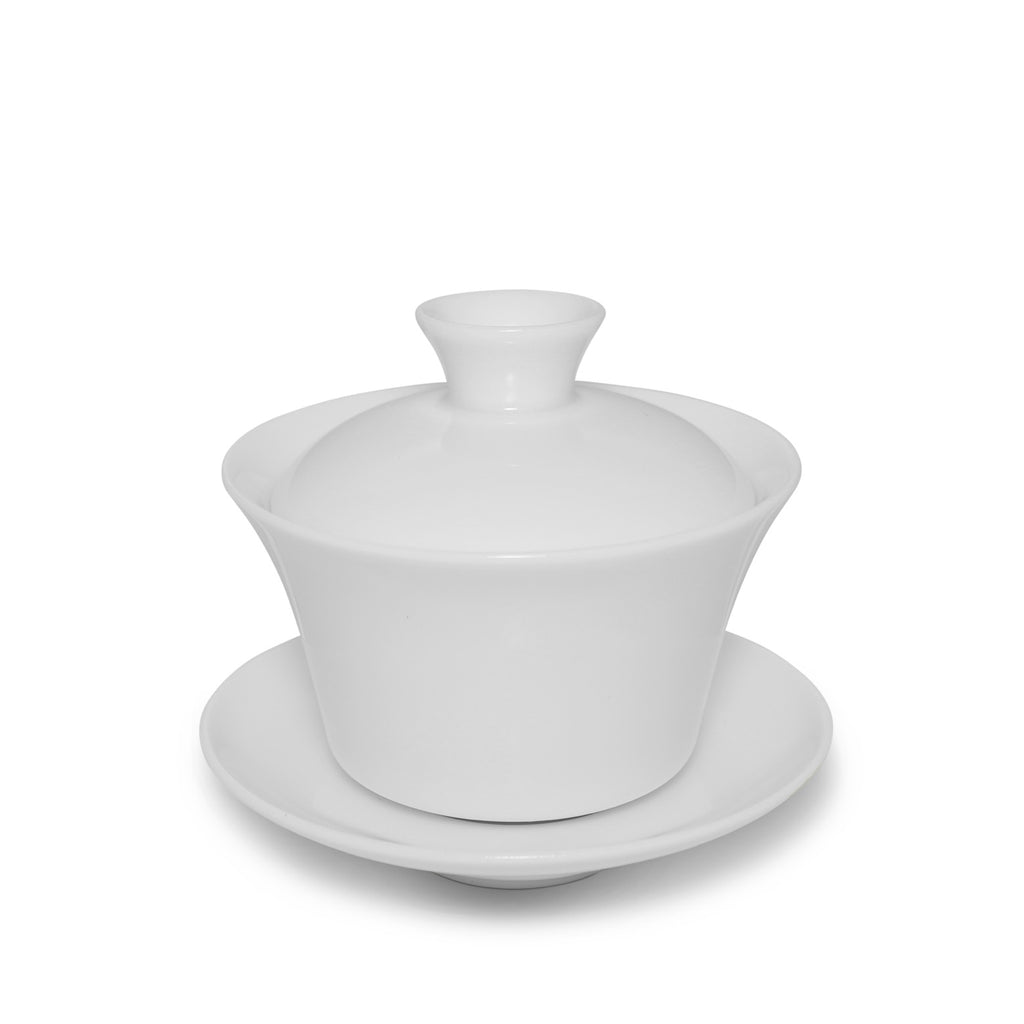 Small but no novice to tea, this white porcelain gaiwan portrays the whimsical nature of the enthusiast: the more one enjoys tea, the smaller one's teaware becomes. Its size is suitable for solo brewing and Chaozhou-style gongfu cha, and particularly useful for side-by-side or blind tastings, supporting a large leaf-to-water ratio while steeping a respectable amount of tea. And neatly do they stack saucer-body-lid atop one another: with a lightweight and sturdy construction that allows an ease of use without the fear of breakage. This classic gaiwan is certainly an excellent standard and an affordable entry into comparative tastings for the unassuming connoisseur.